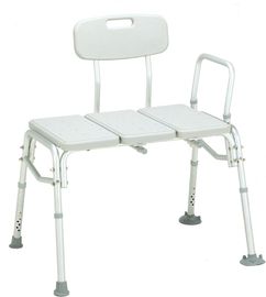 The ProBasics Transfer Bench helps make transfers in and out of the bathtub safer and more comfortable. Constructed with an aluminum anodized frame, it features a reversible set back for right or left handed transfers. The angled legs have one-inch, easy-snap button adjustments and wide-based, non-skid feet for added sturdiness and safety. Patient weights up to 300LBS.