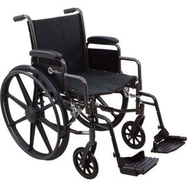 Our wheelchairs are a high quality nylon upholstery for added comfort and have adjustable height desk length armrests. They come standard with swing away leg rests. Comes in 16" or 18".