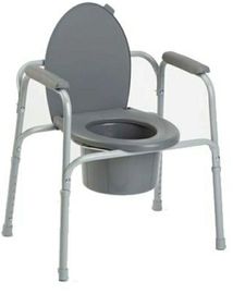 The ProBasics three-in-one steel commode has three versatile functions; it can be used as a toilet safety frame, a commode at bedside, and a raised toilet seat. It features a removable back and comes complete with commode bucket, splash guard and lid. The versatile design includes an elongated deeper seat, armrests for added comfort, angled legs for stability and nonmarring rubber tips. Patient weights up to 300LBS.